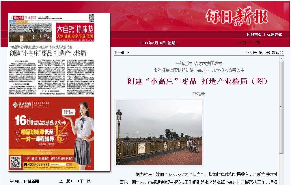 一線走訪 結(jié)對幫扶困難村 市能源集團(tuán)幫扶組進(jìn)駐小高莊村 加大投入改善民生 創(chuàng)建“小高莊”棗品 打造產(chǎn)業(yè)格局