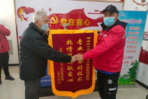 近日,年逾七旬的孫大爺來(lái)到河西區(qū)天塔街天資里小區(qū)燃?xì)怆[患整治現(xiàn)場(chǎng)辦公地點(diǎn),將一面印有“專業(yè)服務(wù)技術(shù)好 熱情周到獻(xiàn)愛(ài)心”的錦旗送到能源集團(tuán)津燃華潤(rùn)眾元公司施工現(xiàn)場(chǎng)負(fù)責(zé)人章連合手中,對(duì)他們主動(dòng)伸出援手、排憂解難的暖心服務(wù)表示感謝。