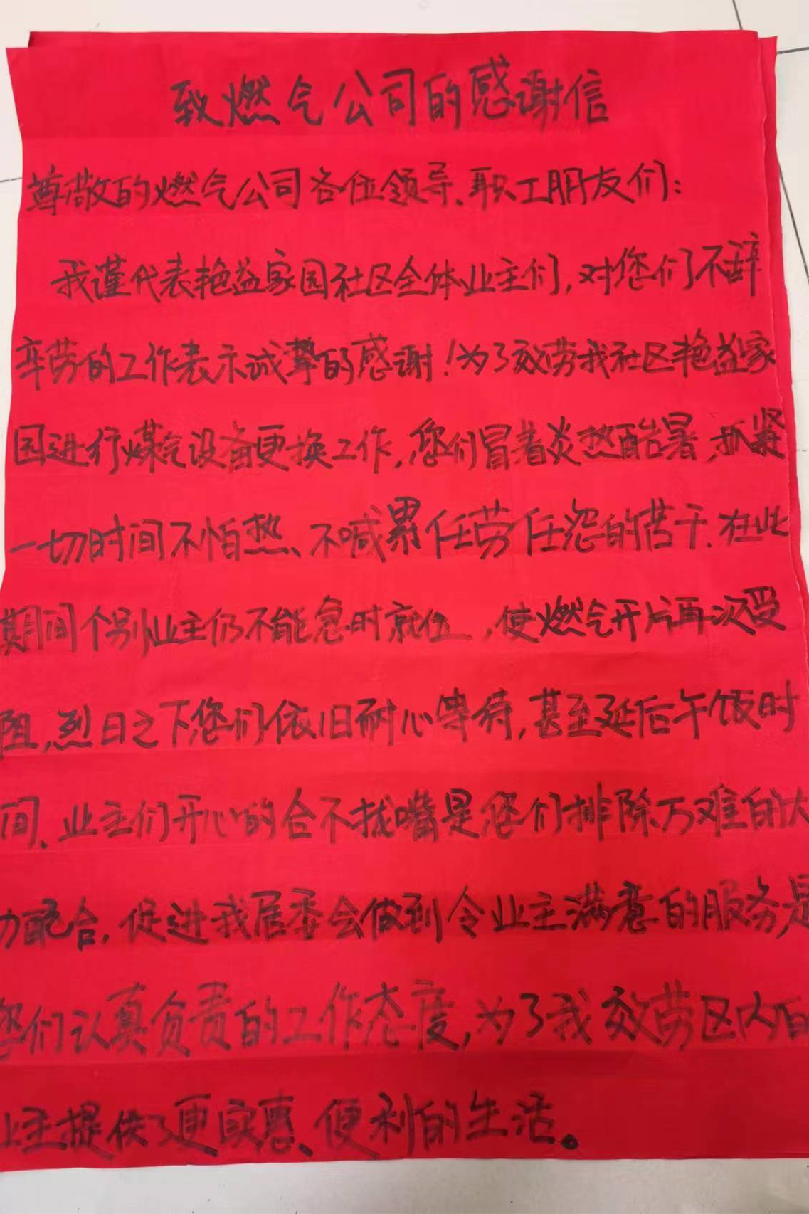 被群眾當(dāng)成“家人”是怎樣的感受?連日來(lái),能源集團(tuán)津燃華潤(rùn)一分公司城北營(yíng)業(yè)所河北區(qū)戶內(nèi)燃?xì)怆[患整治攻堅(jiān)負(fù)責(zé)人張海弘,接連收到群眾送來(lái)的錦旗和感謝信。在近4個(gè)月的改造工作中,張海弘以“親情式”的暖心服務(wù)和高度負(fù)責(zé)的工作態(tài)度贏得了社區(qū)和居民們的普遍認(rèn)可,大家不止一次親切地稱呼他為“家人”。