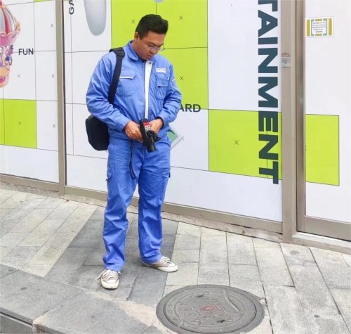 津燃華潤公司輸配分公司城西管線所巡線一隊王振宇進行地下燃氣管線檢測