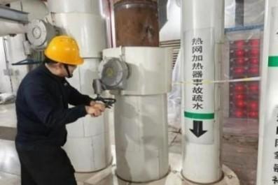 港益供熱公司小王莊示范鎮(zhèn)鍋爐房司爐工周仲寶用測漏儀檢查管道安全情況