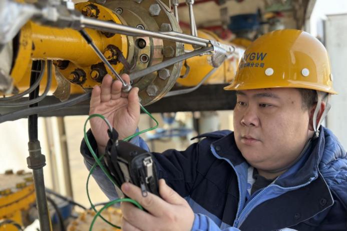 津燃華潤(rùn)公司高壓分公司北部運(yùn)行中心北區(qū)搶運(yùn)隊(duì)褚祥銘在馬家店高調(diào)站進(jìn)行設(shè)備維護(hù)