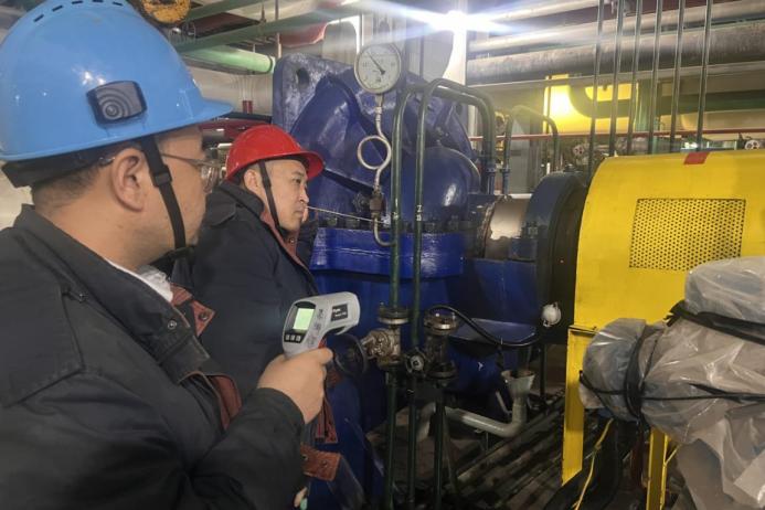 陳塘熱電公司檢修部顧大雪、李明輝檢查熱網(wǎng)循環(huán)泵
