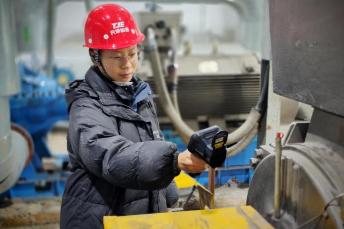熱力公司華苑清潔熱源中心趙夢(mèng)對(duì)循環(huán)泵及電機(jī)等重要設(shè)備進(jìn)行巡查