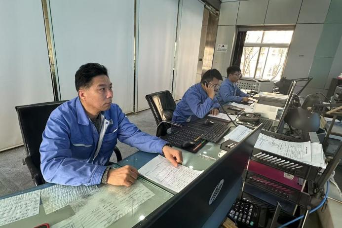 港益公司供熱調(diào)度室何家聰時(shí)時(shí)監(jiān)控供熱數(shù)據(jù)
