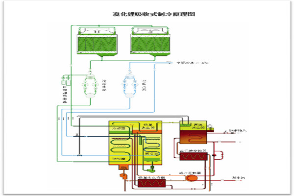 溴化鋰吸收式制冷機(jī)是以溴化鋰溶液為吸收劑,以水為制冷劑,利用水在高真空下蒸發(fā)吸熱達(dá)到制冷的目的。