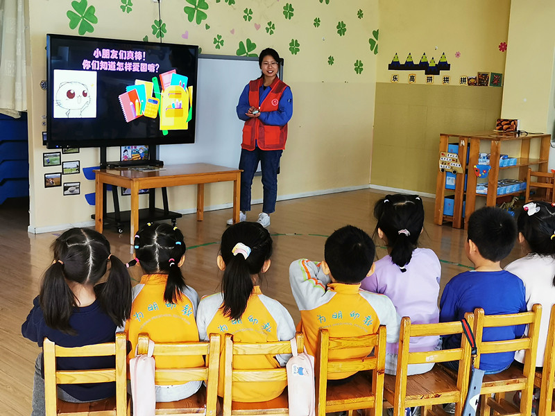 為了本次活動(dòng)順利開(kāi)展,黨支部書記莊健和支部年輕黨員志愿者們做足了功課。他們針對(duì)不同年齡段小朋友的特點(diǎn),購(gòu)買了愛(ài)國(guó)主義教育、生活好習(xí)慣等幼兒繪本讀物,并精心制作了豐富有趣的PPT。活動(dòng)中,他們一邊講解“朱德的扁擔(dān)”“為中華崛起而讀書”等紅色經(jīng)典故事,一邊配合著播放PPT,動(dòng)情的講解、生動(dòng)的情節(jié)深深吸引著孩子們,為他們幼小的心靈種下愛(ài)黨愛(ài)國(guó)的種子。隨后,“大朋友”小朋友共同做起了游戲,在輕松歡快的氛圍中,教導(dǎo)小朋友培育尊老愛(ài)幼品德、學(xué)習(xí)日常垃圾分類小知識(shí)、樹(shù)立團(tuán)結(jié)協(xié)作精神,幫助他們系好人生“第一??圩印薄?/p>