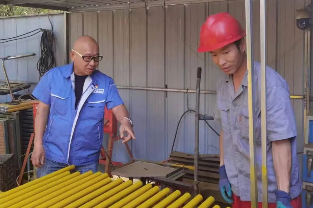 改造施工中,孟憲偉不僅主動承擔(dān)起隊內(nèi)每日班前喊話的任務(wù),還協(xié)助隊長做好現(xiàn)場調(diào)度指揮,合理安排工作。在施工現(xiàn)場,工作人員有的使用套絲機抓緊時間完成套管,有的在高空作業(yè)完成立管安裝,工作秩序井然,一片熱火朝天。