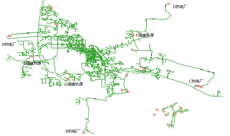 圖4 A電廠、C電廠、G調(diào)峰熱源向B電廠補充熱量水力計算結(jié)果示意圖