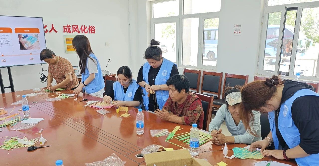應(yīng)用藝術(shù)學(xué)院學(xué)生與村民共同編制非遺竹編扇