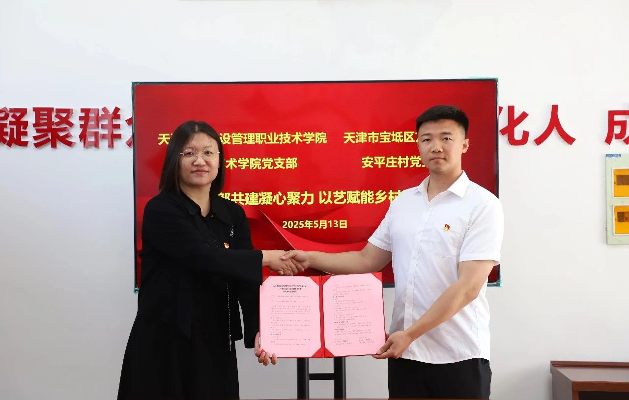 近日,天津能源集團(tuán)所屬天津城市建設(shè)管理職業(yè)技術(shù)學(xué)院(簡稱:城建學(xué)院)應(yīng)用藝術(shù)學(xué)院黨支部與寶坻區(qū)方家莊鎮(zhèn)安平莊村黨支部舉行黨支部黨建共建簽約儀式,開展“以‘藝’賦能,匯‘智’振興”主題實踐活動。雙方相關(guān)負(fù)責(zé)同志及學(xué)院師生代表共40余人參加。